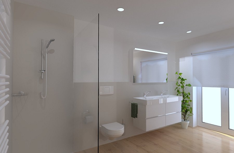 Als kleinen Vorgeschmack präsentieren wir Ihnen hier einige Visualisierungen der Badezimmervarianten für das Ober- bzw. erste Dachgeschoss – lassen Sie sich inspirieren!